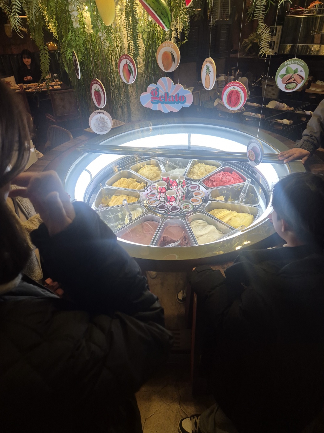 입구에 들어서자 바로 보였던건 젤라또 입니다. 젤라또가 저렇게 보이니 먹을 생각이 없었지만 너무 먹음직스럽게 보여 주문을 유발하게 하였고 보이는 대로 맛도 시각적으로 보이는 만큼 맛이 있었어요.